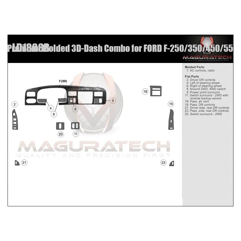 Our 'Flagship' product line comes packed with powerful features, including; 3MTM Primer-less Adhesive, Seam-Less Real Wood, Laser Blackened Edges, OEM ClearVUETM, OEM TruFITTM Engineering OEM Symbol Printing, Chrome Highlights, Logo Highlights, Matte Finishing. This kit is available in various trim finishes including real wood and synthetic wood grain, aluminum, real carbon fiber and synthetic carbon fiber. We do not use cheap paper thin materials, we only use GemFLEX Clear Coat on our product. Our premium clear coat features a thin profile, incredible flexibility & ultimate UV protection that continues to prove its durability, year after year after year. You can be sure our dash trim kits will not crack or yellow. We also have the single largest collection of 2D Dash Trim applications in the industry, dating all the way back to the 1960's. However, if you don't find your vehicle listed, you can use our Premium dash trim Dipping services to add a decorative finish to almost any factory part or contact us and our team is always willing to make custom dash trim kit for you.