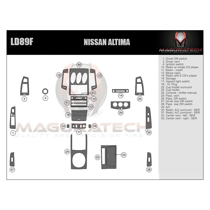 Our 'Flagship' product line comes packed with powerful features, including; 3MTM Primer-less Adhesive, Seam-Less Real Wood, Laser Blackened Edges, OEM ClearVUETM, OEM TruFITTM Engineering OEM Symbol Printing, Chrome Highlights, Logo Highlights, Matte Finishing. This kit is available in various trim finishes including real wood and synthetic wood grain, aluminum, real carbon fiber and synthetic carbon fiber. We do not use cheap paper thin materials, we only use GemFLEX Clear Coat on our product. Our premium clear coat features a thin profile, incredible flexibility & ultimate UV protection that continues to prove its durability, year after year after year. You can be sure our dash trim kits will not crack or yellow. We also have the single largest collection of 2D Dash Trim applications in the industry, dating all the way back to the 1960's. However, if you don't find your vehicle listed, you can use our Premium dash trim Dipping services to add a decorative finish to almost any factory part or contact us and our team is always willing to make custom dash trim kit for you.