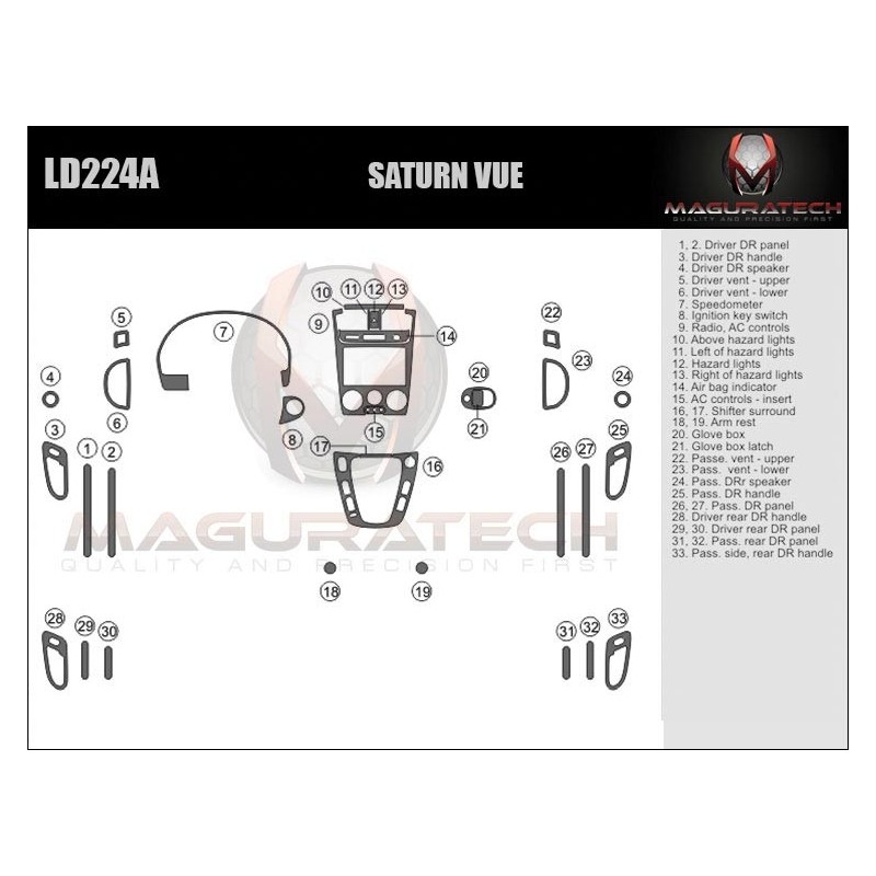 Our 'Flagship' product line comes packed with powerful features, including; 3MTM Primer-less Adhesive, Seam-Less Real Wood, Laser Blackened Edges, OEM ClearVUETM, OEM TruFITTM Engineering OEM Symbol Printing, Chrome Highlights, Logo Highlights, Matte Finishing. This kit is available in various trim finishes including real wood and synthetic wood grain, aluminum, real carbon fiber and synthetic carbon fiber. We do not use cheap paper thin materials, we only use GemFLEX Clear Coat on our product. Our premium clear coat features a thin profile, incredible flexibility & ultimate UV protection that continues to prove its durability, year after year after year. You can be sure our dash trim kits will not crack or yellow. We also have the single largest collection of 2D Dash Trim applications in the industry, dating all the way back to the 1960's. However, if you don't find your vehicle listed, you can use our Premium dash trim Dipping services to add a decorative finish to almost any factory part or contact us and our team is always willing to make custom dash trim kit for you.