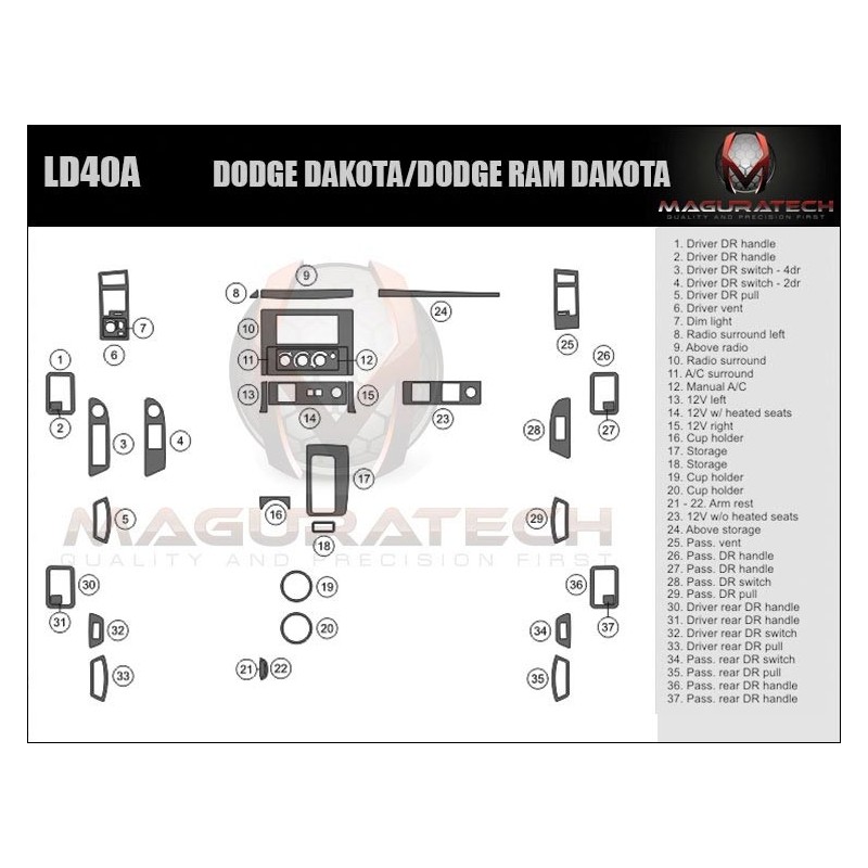 Our 'Flagship' product line comes packed with powerful features, including; 3MTM Primer-less Adhesive, Seam-Less Real Wood, Laser Blackened Edges, OEM ClearVUETM, OEM TruFITTM Engineering OEM Symbol Printing, Chrome Highlights, Logo Highlights, Matte Finishing. This kit is available in various trim finishes including real wood and synthetic wood grain, aluminum, real carbon fiber and synthetic carbon fiber. We do not use cheap paper thin materials, we only use GemFLEX Clear Coat on our product. Our premium clear coat features a thin profile, incredible flexibility & ultimate UV protection that continues to prove its durability, year after year after year. You can be sure our dash trim kits will not crack or yellow. We also have the single largest collection of 2D Dash Trim applications in the industry, dating all the way back to the 1960's. However, if you don't find your vehicle listed, you can use our Premium dash trim Dipping services to add a decorative finish to almost any factory part or contact us and our team is always willing to make custom dash trim kit for you.