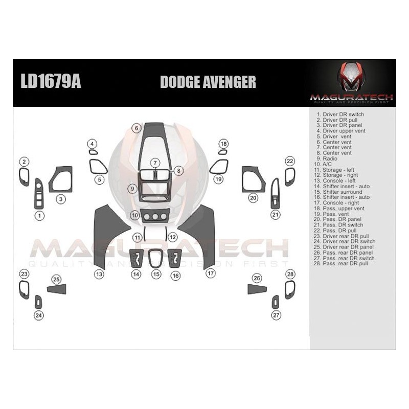 Our 'Flagship' product line comes packed with powerful features, including; 3MTM Primer-less Adhesive, Seam-Less Real Wood, Laser Blackened Edges, OEM ClearVUETM, OEM TruFITTM Engineering OEM Symbol Printing, Chrome Highlights, Logo Highlights, Matte Finishing. This kit is available in various trim finishes including real wood and synthetic wood grain, aluminum, real carbon fiber and synthetic carbon fiber. We do not use cheap paper thin materials, we only use GemFLEX Clear Coat on our product. Our premium clear coat features a thin profile, incredible flexibility & ultimate UV protection that continues to prove its durability, year after year after year. You can be sure our dash trim kits will not crack or yellow. We also have the single largest collection of 2D Dash Trim applications in the industry, dating all the way back to the 1960's. However, if you don't find your vehicle listed, you can use our Premium dash trim Dipping services to add a decorative finish to almost any factory part or contact us and our team is always willing to make custom dash trim kit for you.