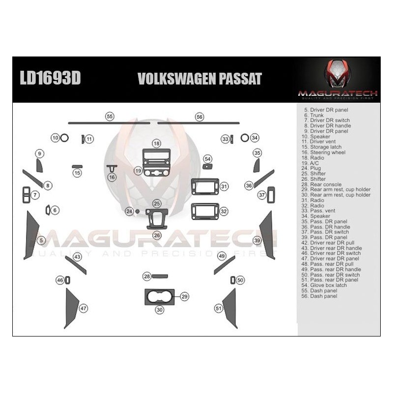 Our 'Flagship' product line comes packed with powerful features, including; 3MTM Primer-less Adhesive, Seam-Less Real Wood, Laser Blackened Edges, OEM ClearVUETM, OEM TruFITTM Engineering OEM Symbol Printing, Chrome Highlights, Logo Highlights, Matte Finishing. This kit is available in various trim finishes including real wood and synthetic wood grain, aluminum, real carbon fiber and synthetic carbon fiber. We do not use cheap paper thin materials, we only use GemFLEX Clear Coat on our product. Our premium clear coat features a thin profile, incredible flexibility & ultimate UV protection that continues to prove its durability, year after year after year. You can be sure our dash trim kits will not crack or yellow. We also have the single largest collection of 2D Dash Trim applications in the industry, dating all the way back to the 1960's. However, if you don't find your vehicle listed, you can use our Premium dash trim Dipping services to add a decorative finish to almost any factory part or contact us and our team is always willing to make custom dash trim kit for you.
