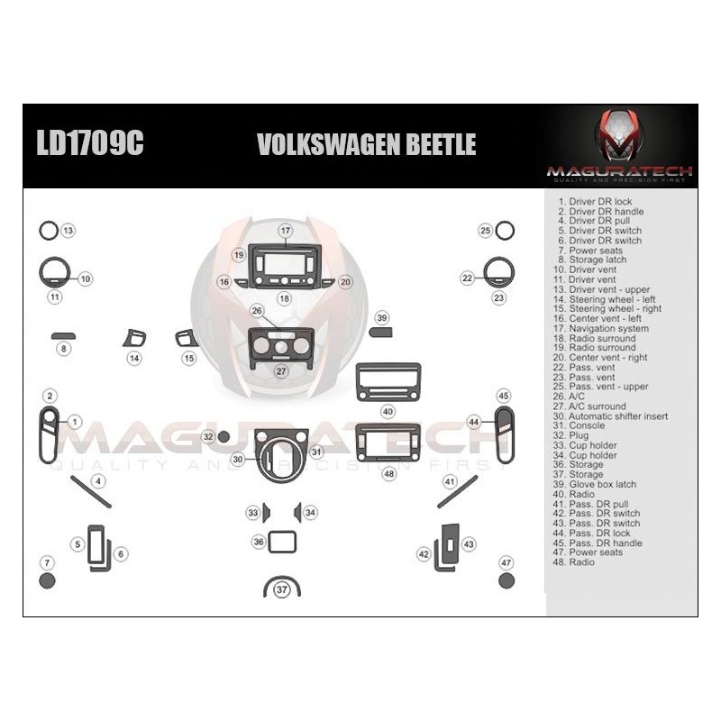 Our 'Flagship' product line comes packed with powerful features, including; 3MTM Primer-less Adhesive, Seam-Less Real Wood, Laser Blackened Edges, OEM ClearVUETM, OEM TruFITTM Engineering OEM Symbol Printing, Chrome Highlights, Logo Highlights, Matte Finishing. This kit is available in various trim finishes including real wood and synthetic wood grain, aluminum, real carbon fiber and synthetic carbon fiber. We do not use cheap paper thin materials, we only use GemFLEX Clear Coat on our product. Our premium clear coat features a thin profile, incredible flexibility & ultimate UV protection that continues to prove its durability, year after year after year. You can be sure our dash trim kits will not crack or yellow. We also have the single largest collection of 2D Dash Trim applications in the industry, dating all the way back to the 1960's. However, if you don't find your vehicle listed, you can use our Premium dash trim Dipping services to add a decorative finish to almost any factory part or contact us and our team is always willing to make custom dash trim kit for you.
