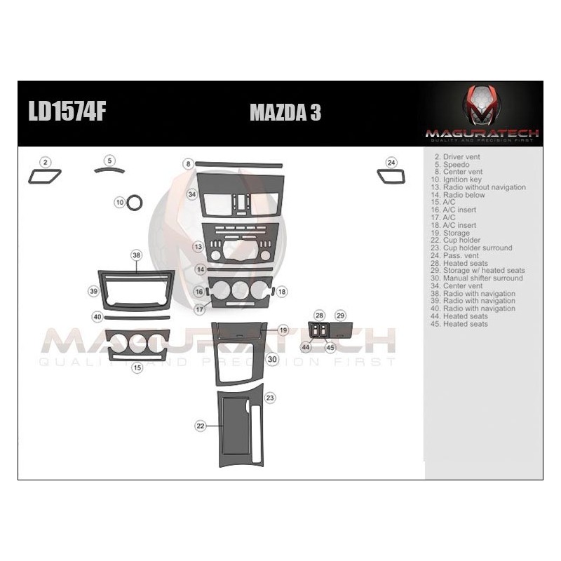 Our 'Flagship' product line comes packed with powerful features, including; 3MTM Primer-less Adhesive, Seam-Less Real Wood, Laser Blackened Edges, OEM ClearVUETM, OEM TruFITTM Engineering OEM Symbol Printing, Chrome Highlights, Logo Highlights, Matte Finishing. This kit is available in various trim finishes including real wood and synthetic wood grain, aluminum, real carbon fiber and synthetic carbon fiber. We do not use cheap paper thin materials, we only use GemFLEX Clear Coat on our product. Our premium clear coat features a thin profile, incredible flexibility & ultimate UV protection that continues to prove its durability, year after year after year. You can be sure our dash trim kits will not crack or yellow. We also have the single largest collection of 2D Dash Trim applications in the industry, dating all the way back to the 1960's. However, if you don't find your vehicle listed, you can use our Premium dash trim Dipping services to add a decorative finish to almost any factory part or contact us and our team is always willing to make custom dash trim kit for you.