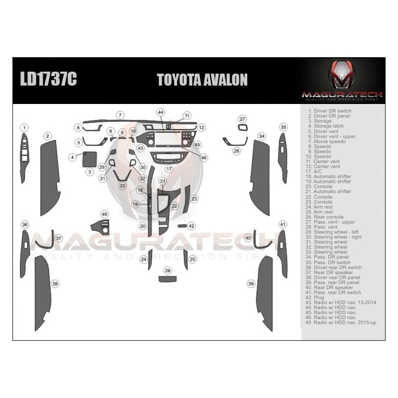 Our 'Flagship' product line comes packed with powerful features, including; 3MTM Primer-less Adhesive, Seam-Less Real Wood, Laser Blackened Edges, OEM ClearVUETM, OEM TruFITTM Engineering OEM Symbol Printing, Chrome Highlights, Logo Highlights, Matte Finishing. This kit is available in various trim finishes including real wood and synthetic wood grain, aluminum, real carbon fiber and synthetic carbon fiber. We do not use cheap paper thin materials, we only use GemFLEX Clear Coat on our product. Our premium clear coat features a thin profile, incredible flexibility & ultimate UV protection that continues to prove its durability, year after year after year. You can be sure our dash trim kits will not crack or yellow. We also have the single largest collection of 2D Dash Trim applications in the industry, dating all the way back to the 1960's. However, if you don't find your vehicle listed, you can use our Premium dash trim Dipping services to add a decorative finish to almost any factory part or contact us and our team is always willing to make custom dash trim kit for you.