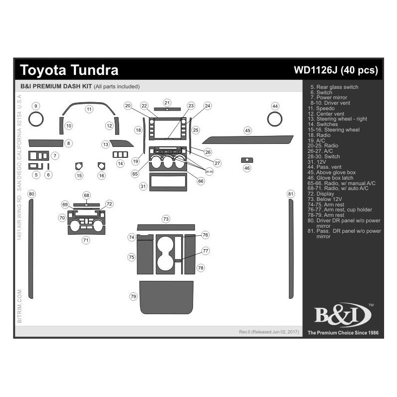 Dash Trim Kit for TOYOTA TUNDRA