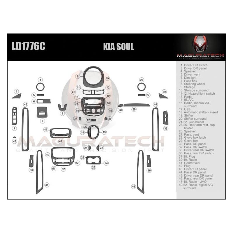 Our 'Flagship' product line comes packed with powerful features, including; 3MTM Primer-less Adhesive, Seam-Less Real Wood, Laser Blackened Edges, OEM ClearVUETM, OEM TruFITTM Engineering OEM Symbol Printing, Chrome Highlights, Logo Highlights, Matte Finishing. This kit is available in various trim finishes including real wood and synthetic wood grain, aluminum, real carbon fiber and synthetic carbon fiber. We do not use cheap paper thin materials, we only use GemFLEX Clear Coat on our product. Our premium clear coat features a thin profile, incredible flexibility & ultimate UV protection that continues to prove its durability, year after year after year. You can be sure our dash trim kits will not crack or yellow. We also have the single largest collection of 2D Dash Trim applications in the industry, dating all the way back to the 1960's. However, if you don't find your vehicle listed, you can use our Premium dash trim Dipping services to add a decorative finish to almost any factory part or contact us and our team is always willing to make custom dash trim kit for you.