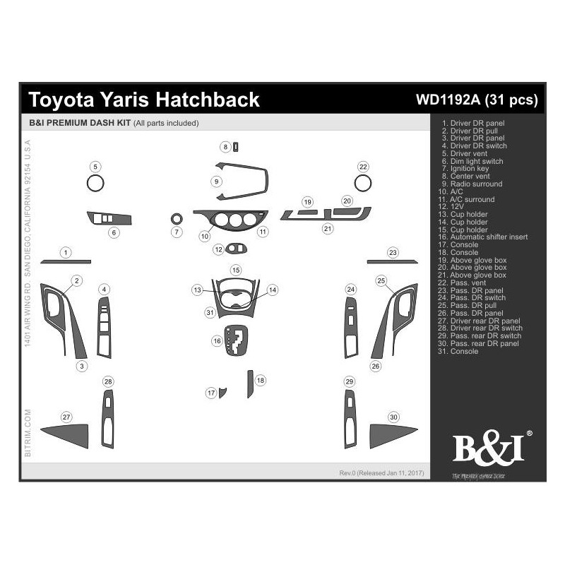 Our 'Flagship' product line comes packed with powerful features, including; 3MTM Primer-less Adhesive, Seam-Less Real Wood, Laser Blackened Edges, OEM ClearVUETM, OEM TruFITTM Engineering OEM Symbol Printing, Chrome Highlights, Logo Highlights, Matte Finishing. This kit is available in various trim finishes including real wood and synthetic wood grain, aluminum, real carbon fiber and synthetic carbon fiber. We do not use cheap paper thin materials, we only use GemFLEX Clear Coat on our product. Our premium clear coat features a thin profile, incredible flexibility & ultimate UV protection that continues to prove its durability, year after year after year. You can be sure our dash trim kits will not crack or yellow. We also have the single largest collection of 2D Dash Trim applications in the industry, dating all the way back to the 1960's. However, if you don't find your vehicle listed, you can use our Premium dash trim Dipping services to add a decorative finish to almost any factory part or contact us and our team is always willing to make custom dash trim kit for you.