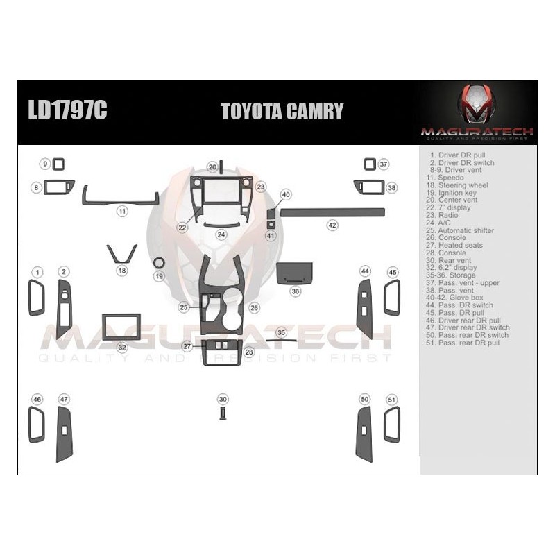 Our 'Flagship' product line comes packed with powerful features, including; 3MTM Primer-less Adhesive, Seam-Less Real Wood, Laser Blackened Edges, OEM ClearVUETM, OEM TruFITTM Engineering OEM Symbol Printing, Chrome Highlights, Logo Highlights, Matte Finishing. This kit is available in various trim finishes including real wood and synthetic wood grain, aluminum, real carbon fiber and synthetic carbon fiber. We do not use cheap paper thin materials, we only use GemFLEX Clear Coat on our product. Our premium clear coat features a thin profile, incredible flexibility & ultimate UV protection that continues to prove its durability, year after year after year. You can be sure our dash trim kits will not crack or yellow. We also have the single largest collection of 2D Dash Trim applications in the industry, dating all the way back to the 1960's. However, if you don't find your vehicle listed, you can use our Premium dash trim Dipping services to add a decorative finish to almost any factory part or contact us and our team is always willing to make custom dash trim kit for you.