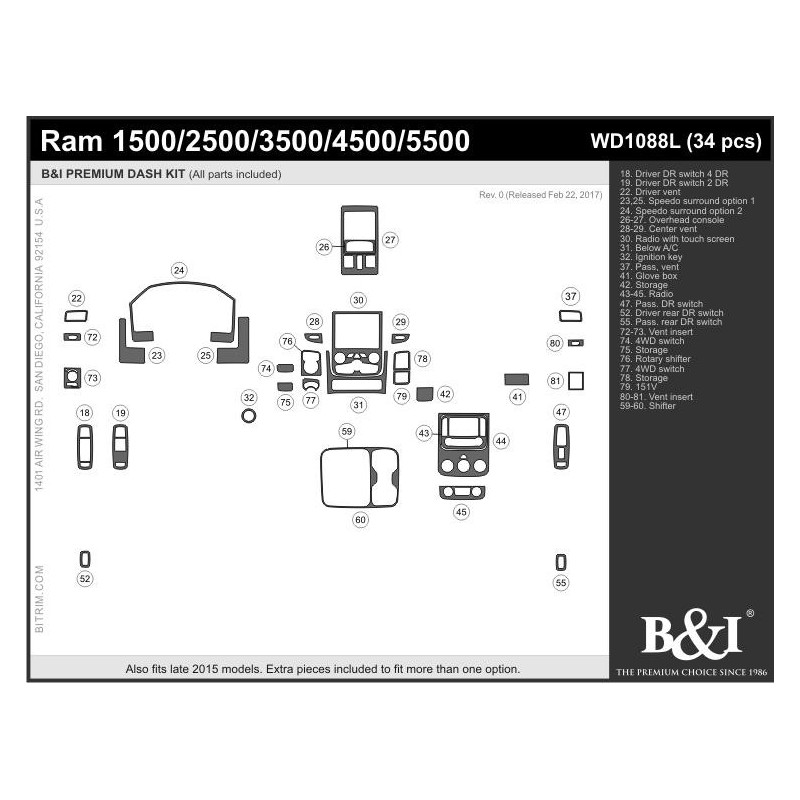 Our 'Flagship' product line comes packed with powerful features, including; 3MTM Primer-less Adhesive, Seam-Less Real Wood, Laser Blackened Edges, OEM ClearVUETM, OEM TruFITTM Engineering OEM Symbol Printing, Chrome Highlights, Logo Highlights, Matte Finishing. This kit is available in various trim finishes including real wood and synthetic wood grain, aluminum, real carbon fiber and synthetic carbon fiber. We do not use cheap paper thin materials, we only use GemFLEX Clear Coat on our product. Our premium clear coat features a thin profile, incredible flexibility & ultimate UV protection that continues to prove its durability, year after year after year. You can be sure our dash trim kits will not crack or yellow. We also have the single largest collection of 2D Dash Trim applications in the industry, dating all the way back to the 1960's. However, if you don't find your vehicle listed, you can use our Premium dash trim Dipping services to add a decorative finish to almost any factory part or contact us and our team is always willing to make custom dash trim kit for you.