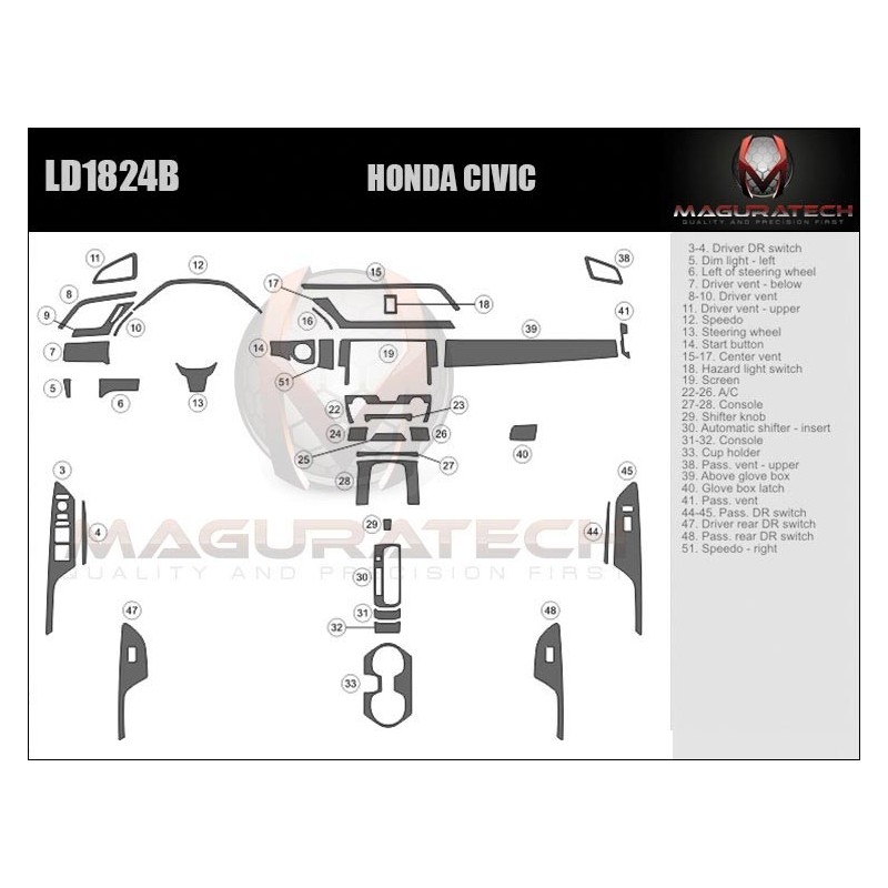 Our 'Flagship' product line comes packed with powerful features, including; 3MTM Primer-less Adhesive, Seam-Less Real Wood, Laser Blackened Edges, OEM ClearVUETM, OEM TruFITTM Engineering OEM Symbol Printing, Chrome Highlights, Logo Highlights, Matte Finishing. This kit is available in various trim finishes including real wood and synthetic wood grain, aluminum, real carbon fiber and synthetic carbon fiber. We do not use cheap paper thin materials, we only use GemFLEX Clear Coat on our product. Our premium clear coat features a thin profile, incredible flexibility & ultimate UV protection that continues to prove its durability, year after year after year. You can be sure our dash trim kits will not crack or yellow. We also have the single largest collection of 2D Dash Trim applications in the industry, dating all the way back to the 1960's. However, if you don't find your vehicle listed, you can use our Premium dash trim Dipping services to add a decorative finish to almost any factory part or contact us and our team is always willing to make custom dash trim kit for you.