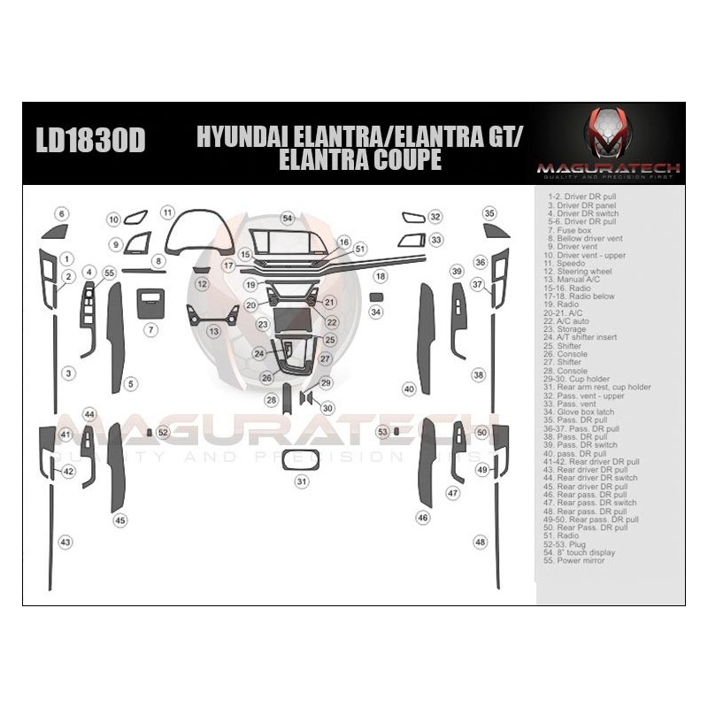 Our 'Flagship' product line comes packed with powerful features, including; 3MTM Primer-less Adhesive, Seam-Less Real Wood, Laser Blackened Edges, OEM ClearVUETM, OEM TruFITTM Engineering OEM Symbol Printing, Chrome Highlights, Logo Highlights, Matte Finishing. This kit is available in various trim finishes including real wood and synthetic wood grain, aluminum, real carbon fiber and synthetic carbon fiber. We do not use cheap paper thin materials, we only use GemFLEX Clear Coat on our product. Our premium clear coat features a thin profile, incredible flexibility & ultimate UV protection that continues to prove its durability, year after year after year. You can be sure our dash trim kits will not crack or yellow. We also have the single largest collection of 2D Dash Trim applications in the industry, dating all the way back to the 1960's. However, if you don't find your vehicle listed, you can use our Premium dash trim Dipping services to add a decorative finish to almost any factory part or contact us and our team is always willing to make custom dash trim kit for you.